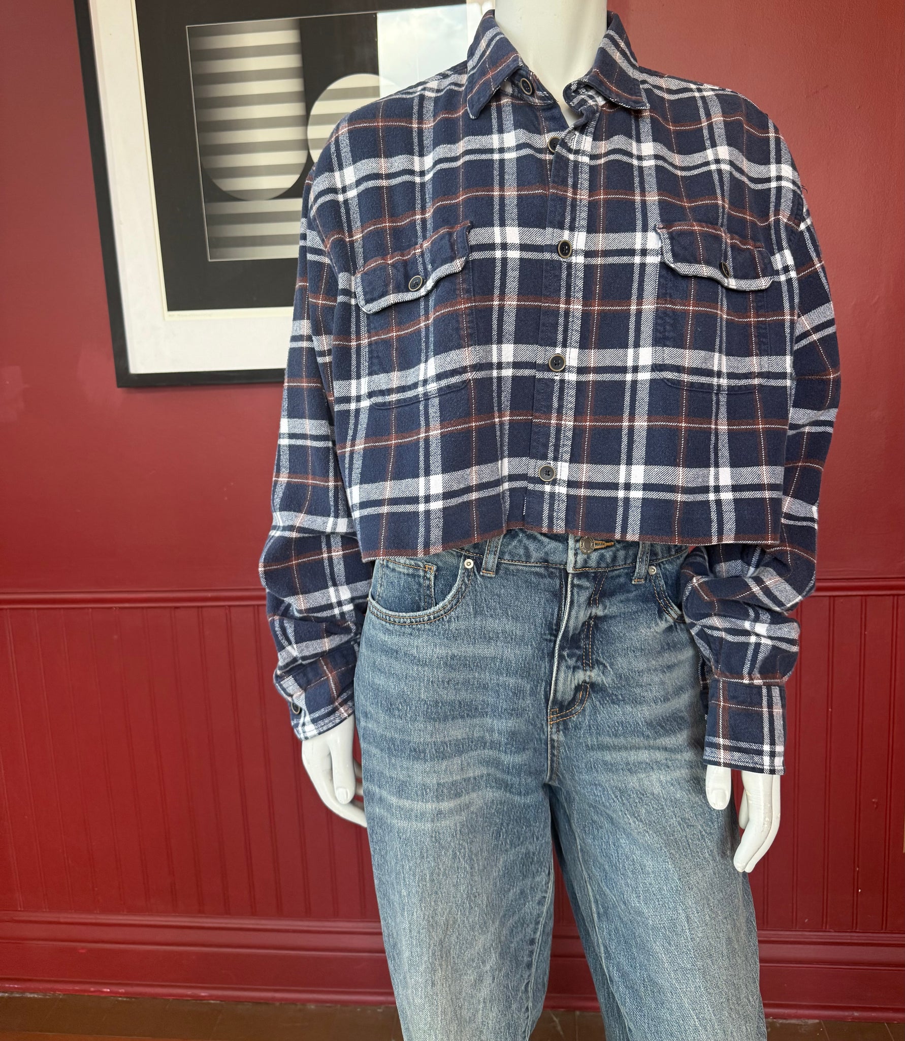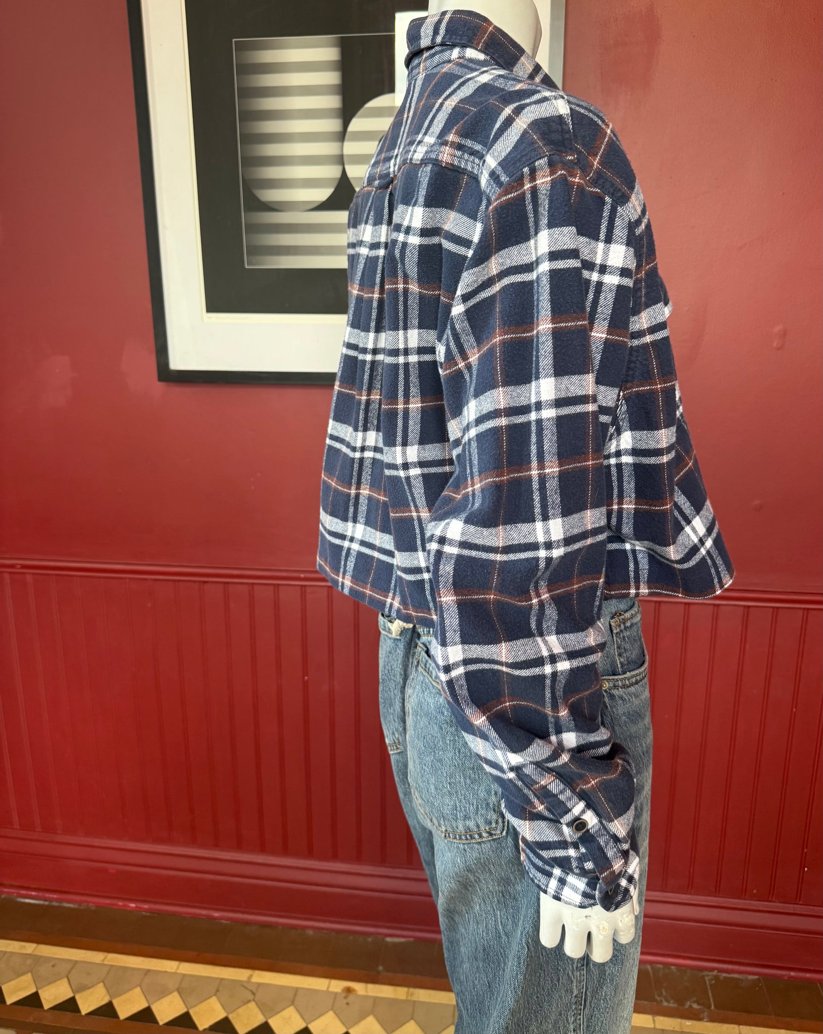 Here is officially flannel season and these crops are perfect over a white tee and jeans as a cropped jacket or on their own. 100% cotton, double pockets. Sleeves are meant to be long the sleeve measurement is listed.