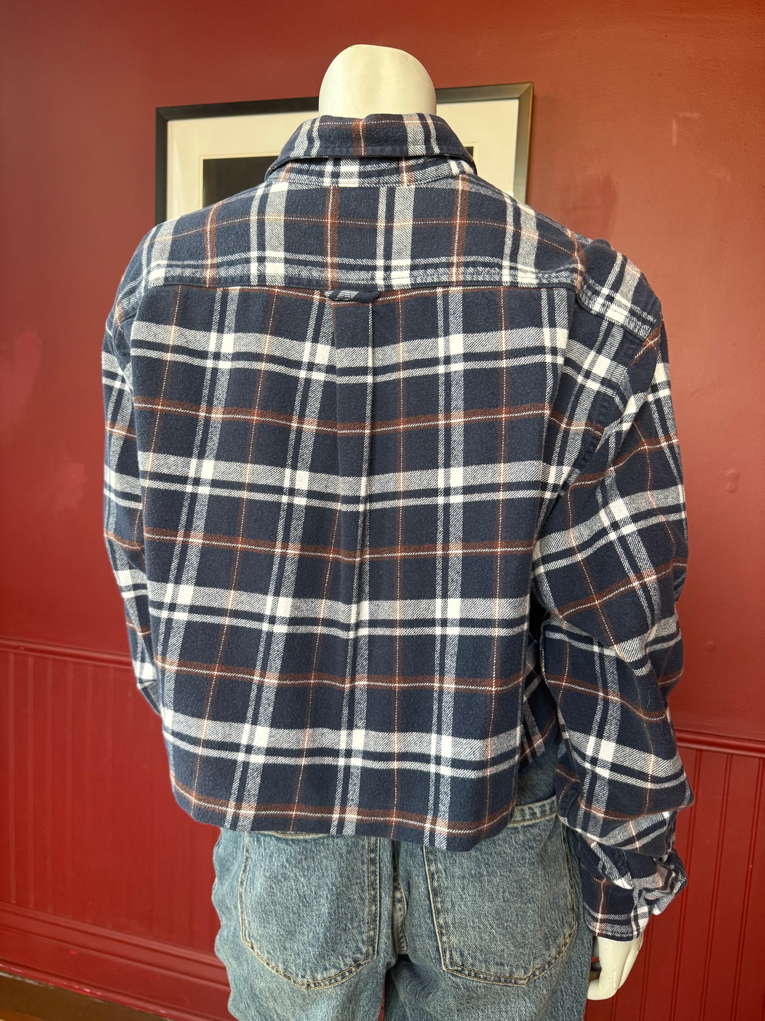 Here is officially flannel season and these crops are perfect over a white tee and jeans as a cropped jacket or on their own. 100% cotton, double pockets. Sleeves are meant to be long the sleeve measurement is listed.