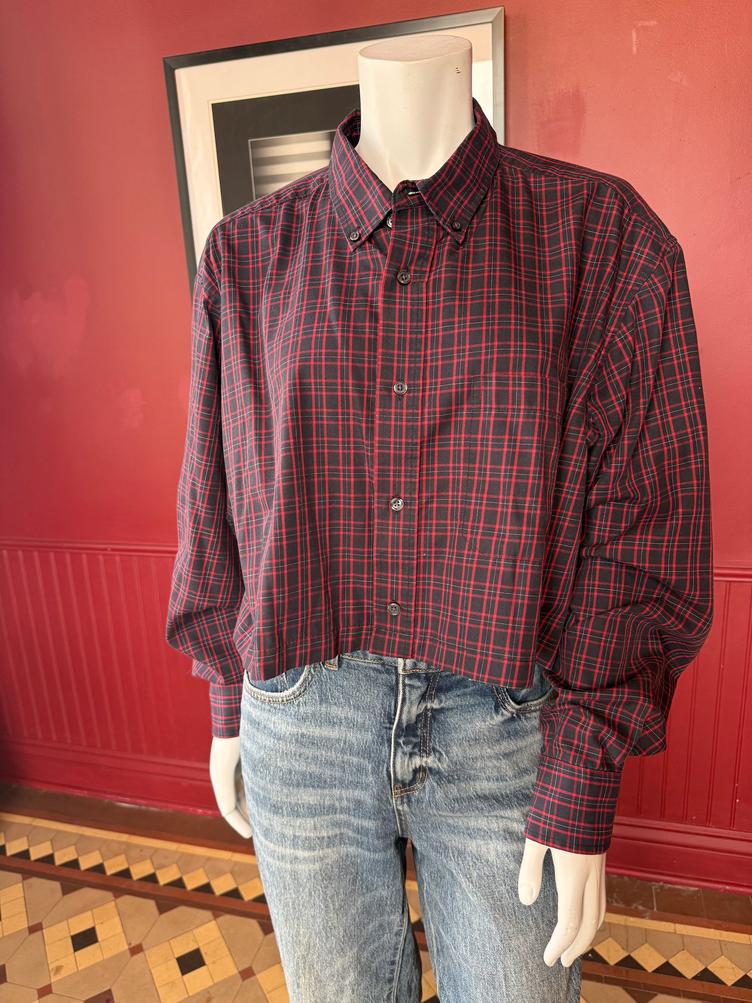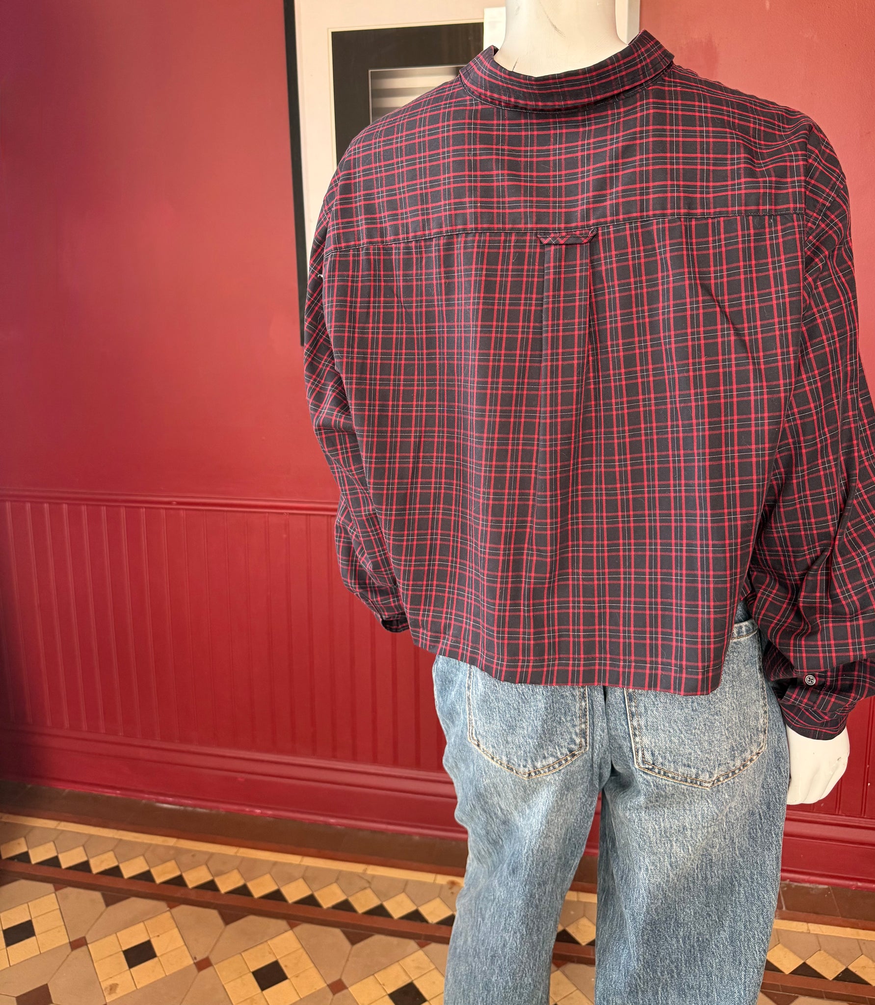 This dark navy and red plaid is a really nice winter pattern. 100% cotton